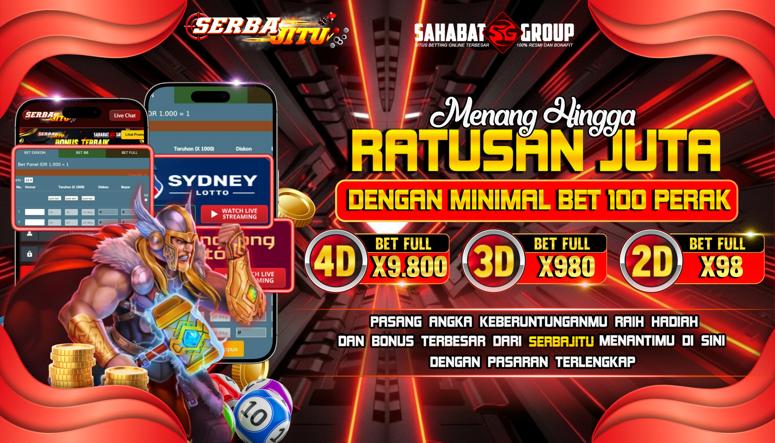 SELAMAT DATANG DI WWW.SERBAJITU.COM SITUS RESMI TOGEL ONLINE TERBESAR DAN AMAN DENGAN PASARAN TOGEL TERLENGKAP. LIVE CASINO TERBAIK DAN SLOT ONLINE TERPOPULER. MINIMAL DEPOSIT Rp. 10.000 - MINIMAL WITHDRAW Rp. 50.000 - SELAMAT BERMAIN DAN SEMOGA BERUNTUNG